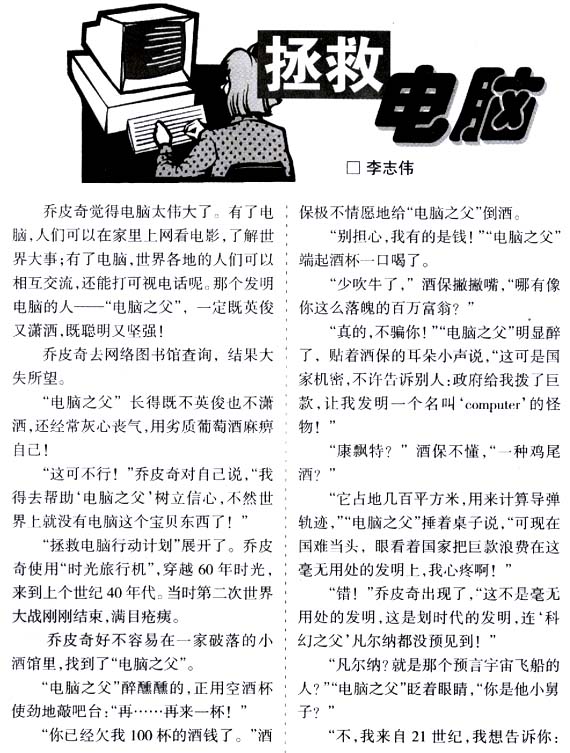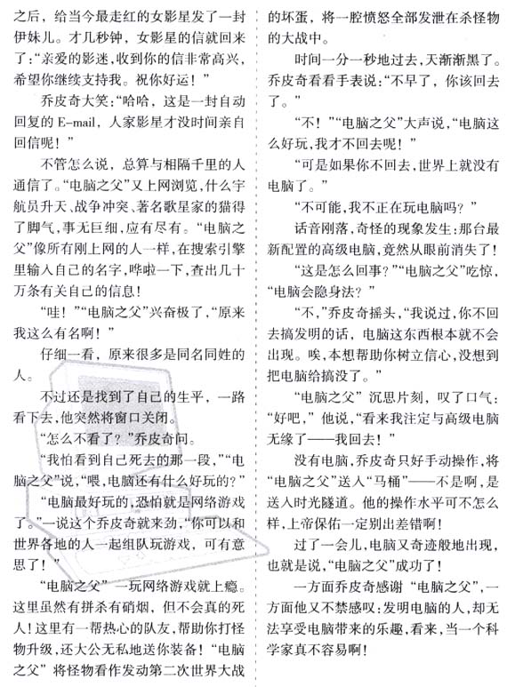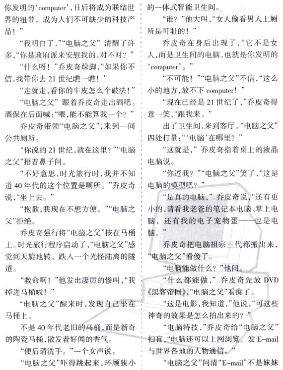 乔皮奇觉得电脑太伟大了。有了电脑,人们可以在家里上网看电影,了解世界大事。