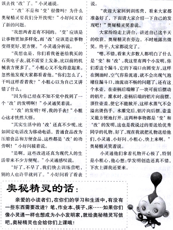 “小灵通,你是要去发明训练营上课吧,我们一起去好吗?”小好问缠着刚要出门的小灵通。