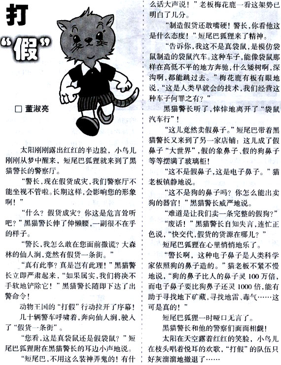 太阳刚刚露出红红的半边脸,小鸟儿刚刚从梦中醒来,短尾巴狐狸就来到了黑猫警长的警察厅。