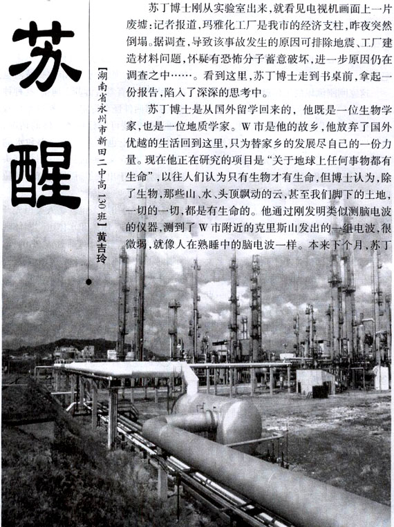 苏丁博士刚从实验室出来,就看见电视机画面上一片废墟:记者报道,玛雅化工厂是我市的经济支柱,昨夜忽然倒塌。
