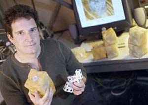 首先,机器人弯下腰来,让头部的第一个立方体落下来,接着再弯腰,让另外一个立方体也落下来,并且把它放在第一个立方体的上方。之后,它重复做这样的动作。不一会儿,一个新机器人的大体轮廓就出现了。聪明的机器人还会自动把立方体摆正。整个复制过程只需要2.5分钟。