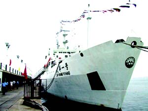 这是我国第一次具有现代意义的环球大洋科学考察,也是我国的海洋科学考察船首次进军太平洋、大西洋和印度洋。这次科学考察的主要对象是国际海底,为期300天,总航程约60 000千米,预计考察队将于2006年1月回到青岛。在考察过程中,考察队将对三大洋的中脊进行综合的科学考察,对海底热液硫化物资源、生物资源和相关环境开展调查。