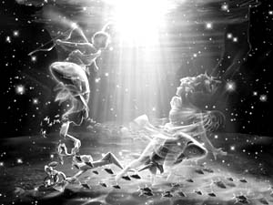 屏幕上,火红色的多拉星疯狂地冲向我们的家园,瞬间,彼此全部化成碎片。片雪紧紧地抓住我,努力不让自己哭出来。美丽的彼斯星,永远地消失了……