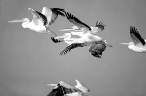 “鸟类骨骼是空心的,充满了空气,内脏周围有许多充满空气的气囊,所以,鸟类身体都比较轻,便于飞行。还有,鸟没有膀胱,大肠很短,输尿管也很短,鸟类的尿液和粪便可以在飞行当中随时排出,减轻体重,有利于飞行。鸟的呼吸器官也很独特。它们的肺有4对气囊,即颈气囊、前后胸气囊、腹气囊、锁间气囊。气囊存储了大量气体,减轻了鸟的密度,这些都是别的动物没有的。