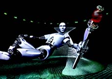 能跑,而且动作自如。如果在腿上安上电动机,还能使人跑得像汽车一样快呢。