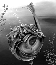 “好吧!”米勒说道,“刚才我们三个跟往常一样给这些鱼儿们喂食,用SCP(单细胞蛋白)喂它们。那家伙就从下面偷偷地‘流’过来了。你知道,我们是浮在半空中的。它咬了教授拿着SCP的手,然后就用尾巴抽他。哦!可怜的教授。”此时的米勒已经泣不成声了。