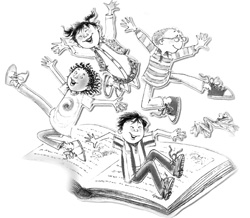 他们上课是在一座固定的大楼里,四五十个人就分成一个班,上一整天的课,傍晚才回到自己家里,在用几十张纸订成的一个小本子上做算术题,写花和草是怎么生长的,画一张图画……第二天,他们把小本子交给一个学生代表,这个代表再把四五十份小本子交给老师,老师用红色的笔在上面写写画画,然后把小本子发回给大家。古人类是很快乐的,他们每天可以看到同学和朋友,不像我们这样,彼此隔绝,见不了面。