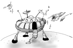 连长大喊一声:“集合!”我的机器人士兵一起赶了过来。在一阵“立正”“向右看齐”“恢复正常状态”的口令声中,缩微的机器人突然变大,如同天兵神将一样列队站在我的前面。连长向我请示,下一步如何行动。我考虑了一下,决定立即乘坐飞行器返回地球。至于这个星球上的机器人如何处置,我的命令是把他们头脑里存有的在地球上的那段经历及对地球人的一些偏见全部作删除处理。待我们起飞至绝对安全距离后,再让首领和他的部下恢复为“开机”状态。