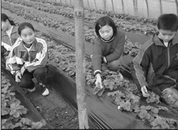 我们小马驹学农科技组的实验基地是一个花园式的现代农业示范园,一排排塑料大棚整齐地立在绿色的田野上,大棚内一片春意盎然。