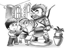我们还看到了冰人的服饰和用品。冰人有一把铜斧,这也是迄今为止所发现的惟一一把完整的新石器时代的铜斧。此外,还有一把近两米长的弓、一个装满箭的箭筒和一把装在小袋子里的燧石刀具。“哇,这把弓真不赖啊!”三个小家伙都睁大了眼睛。希希笑着说:“好像没人问我冰人的年代是怎么推算出来的啊!那就请聪明的小先锋们告诉我吧!”