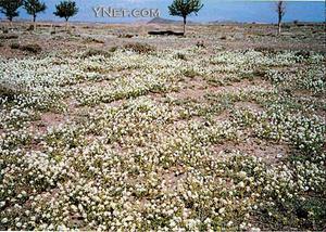 每年5月,乌鲁木齐近郊的荒漠上遍布短命植物——涩芥 短命植物可以在内蒙古、宁夏等省区的沙漠地区推广,沙尘暴有望被降服。