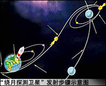 中国探月计划首期目标——“绕月探测卫星”发射步骤示意图
