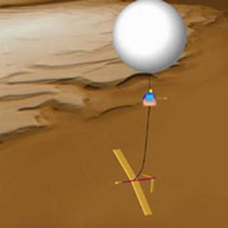 虽然在1985年曾有两个气球成功地在金星大气中展开,利用气球研究行星仍然受限制。当然,在气球上安放发动机可以使气球变成为飞船或飞艇,但是如果气球做得太苯重,要运往其他行星就会耗能太多和太昂贵。因此全球航空航天协会建议利用所谓StratoSail气球引导系统的新装置,它能控制气球。该装置实际上是用长几千米的系绳悬挂在气球下面的一架滑翔机(见图)。相对于风速的差别,在滑翔机与气球之间会产生一个力,该力使气球速度在100天飞行中达到1米/秒。