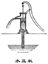 “大自然厌恶真空。”─古代的哲学家们就是这样说的。水压机看来正是大自然厌恶真空的极好的例证。在水压机的把手被压下去时,活塞就被提起来,从而在圆筒的下半部分留下一段真空。但由于大自然厌恶真空,所以周围的水会打开筒底的一个单向阀门,涌入真空。重复进行这种运作,就会把筒内的水越提越高,直到它从泵口流出。根据亚里斯多德的学说,应该用这个方法把