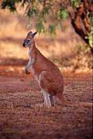 世界上现有250种有袋动物,其中170种产于澳大利亚及其附近岛屿。澳大利亚出产的有袋动物,几乎适应本国的每一生境,所以称澳大利亚为“有袋类之国”。 在有袋动物中,最大的要数红大袋鼠了。成熟的雄性,站起来可超过2米,比一般的人还高;体重将近90千克,也比人重;从鼻尖至伸直的尾巴直线长度为2.7米。大袋鼠在野外靠后肢跳跃,所以后肢高度发达,约为前肢的5—6倍长。前肢平时不落地面,只有在吃草时才着地,所以变得细短。它用力一跳,能够跳过2米高的篱笆或7米宽的壕沟。大袋鼠有一条粗长的尾巴,最长 < 1 > < 2 >
