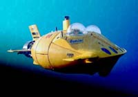 在英国伦敦科学博物馆观看展出的一辆娱乐潜水艇。这艘色彩鲜艳、设计独特的娱乐潜水艇是由设计师罗伯特·利兹和弗兰克·巴克设计的,总造价为50万英镑,被设计师称为世界上第一艘“水下跑车”。