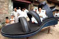 2003年7月2日,巴基斯坦拉合尔市的一只世界第一大的凉鞋进入吉尼斯纪录。这只凉鞋长3.93;宽1.46米。