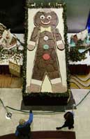 英国厨师斯蒂恩哈特为了冲击吉尼斯世界纪录,制作了一个4.2米的大饼干,一共用去了100公斤的面粉、20公斤的白糖。