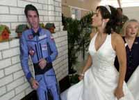 2003年美国时间8月10日(北京时间8月11日),26岁俄罗斯裔的美国姑娘叶卡特林娜在家乡美国得州休斯顿举行婚礼,而她41岁的未婚夫--目前在国际空间站任指挥官的俄罗斯宇航员尤里-马连切科则远在太空,这也是人类历史上首个太空婚礼。 缺席婚礼请律师代理 在美国得州,当地的婚姻法允许以代理人形式即由他人代表新郎参加婚礼,在7月17日,在没有新郎在场的情况下,叶卡特林娜在休斯敦福特邦得县顺利领到了结婚证。而在10日婚礼举行时,马连切科本人不到场,由一名律师朋友以他的代理人身份参