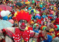 2004年2月23日,在葡萄牙首都里斯本以南30公里的塞辛布拉村举行的狂欢节上,,约2400名狂欢者装扮成小丑,创造了“小丑”游行的吉尼斯世界纪录。
