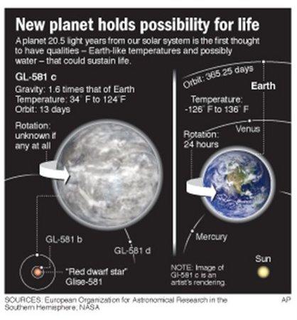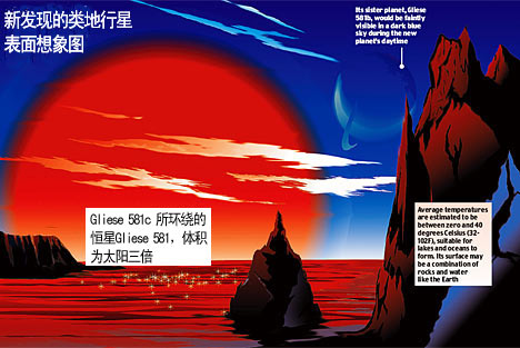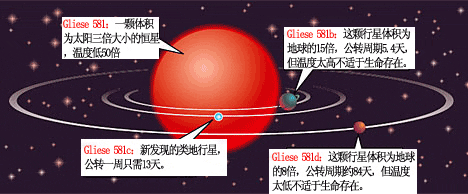 欧洲南方天文台于美国东部时间4月24日公布了新发现的行星“Gliese 581 c”围绕红矮星“Gliese