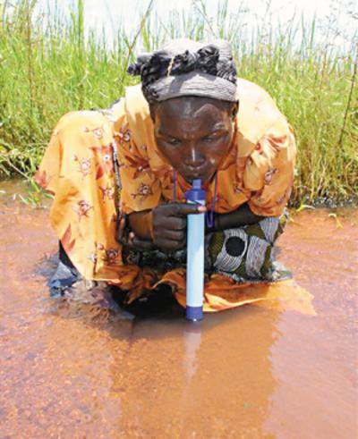 生命吸管 由丹麦一家公司设计的这款吸吮装置长25厘米,却可把导致腹泻、疟疾和霍乱的水中病菌滤走。
