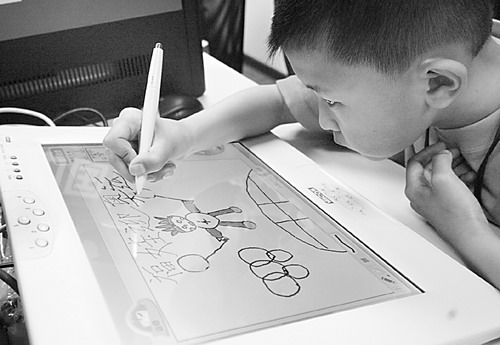 5月23日,长春市的8岁小选手沈军言在比赛中。当日,由国家信息产业部等多家单位主办的第十六届全国“六一”国际儿童节计算机表演赛决赛在北京举行。来自全国的300余名少年儿童参加了本次比赛。