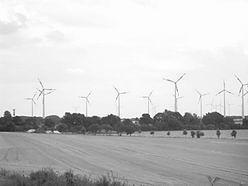 图为在德国的高速路两旁随处可见风力发电机群。吕鸿摄