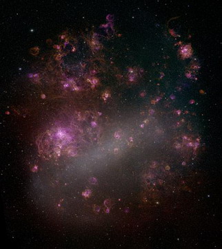 超新星遗迹(SNR)0509-67.5所在的大麦哲伦星云,这个星云距地球约1.6万光年