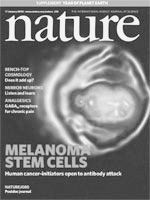 癌症干细胞已经从若干人类肿瘤中被分离了出来。最新发现的是人类恶性黑素瘤引发细胞的一个亚组,科学家根据它们对化学抵抗力调节因子ABCB5的表达将其识别出来。ABCB5+亚组的大小与黑素瘤患者临床病情发展相关,初步证据还表明,这些黑素瘤干细胞可以用针对ABCB5的抗体将其作为特异性目标。这为黑素瘤提供了一个潜在的治疗策略,而且对这种类型细胞进行研究还有可能回答癌症生物学中的重要问题。本期封面所示混合型黑素瘤细胞(电脑增强的荧光显微镜图像合成图)是在页码:[1] [2] [3] [4] [5] [6] 第1页、共6页 |