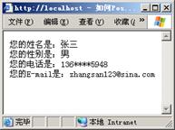 oadFiles_6016/200805/2008052320482784.jpg"> 图8.2 Post方法提交表单数据的运行结果