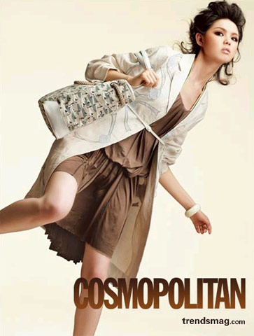 补花风衣,Prada;连衣裙,Louis Vuitton;腰带,Prada;手袋,Tod's