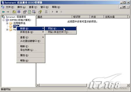 面点“开始”->“管理工具”,在“管理工具”下面找到“internet信息服务(IIS)管理器”。点击该项打开IIS6设置界面。(如图1)  图1 点击看大图 第二步:在Internet信息服务(IIS)管理器中我们可以看到本地计算机下有三个分支,分别为应用程序池,网站和WEB服务扩展。(如图2)  图2 点击看大图 第三步:我们要发布的是网站,所以在“网站”上点鼠标右键选择“新建->网站”。(如图3)  图3 点击看大图 第四步:之后会自动打开“网站创建向导”。(如图4) 页码:[1] [2] [3] [4] [5] [6] [7] 第2页、共7页 |