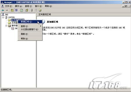 置窗口中新建一个正向查找区域。(如图26)  图26 点击看大图 第十二步:在打开的“新建区域向导”中点“下一步”继续。(如图27)  图27 第十三步:选择建立主要区域。(如图28)  图28 第十四步:设置区域名称,我们写入softer.com,因为我们主机头设置的是www.softer.com。“下一步”后继续。(如图29) 页码:[1] [2] [3] [4] [5] [6] [7] 第6页、共7页 |