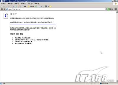 TER> 第十五步:在iis管理器的“internet信息服务->softer(本地扑慊?->网站->默认网站”上点鼠标右键选择“属性”打开IIS设置窗口。 第十六步:在打开的属性窗口中找到“文档”标签,由于默认情况下浏览站点不支持ASP程序,所以需要我们进行设置。点“添加”按钮,在弹出窗口中输入index.asp后确定即可。这样IIS站点就支持ASP程序了,我们可以在我们的网站中使用ASP论坛及ASP建立的WEB页面了。(如图15)  图15 小提示:其实还有一个非常简单的方法可以判断本机是否安装了IIS组件,就是打开你的IE浏览器,在地址栏中输入http://127.0.0.1后回车,如果出现“建设中”的提示的话说明本机安装了IIS组件。(前提是没有对默认的IIS组件信息进行改动)(如图16)  图16<页码:[1] [2] [3] [4] [5] [6] [7] 第6页、共7页 |