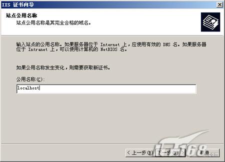 第九步:在站点公用名称窗口输入localhost。(如图18)