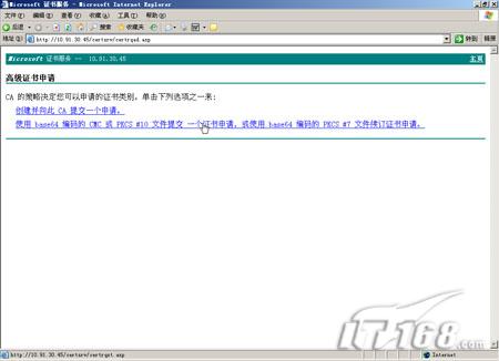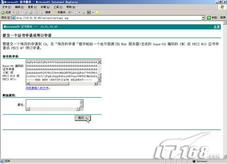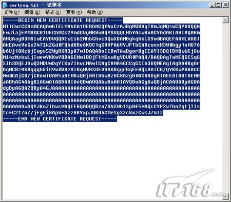 第四步:在高级证书申请界面选择“使用base64编码的CMC或PKCS #10文件提交一个证书申请,或继订证书申请”。(如图24)  图24 第五步:用记事本打开上面保存在桌面上的那个certreq.txt文件,将里面的内容全部复制。(如图25)  图25 第六步:将复制的全部内容粘贴到“提交一个证书申请或续订申请”界面,然后点“提交”按钮。(如图26) 页码:[1] [2] [3] [4] [5] 第2页、共5页 |