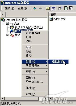 四、使用虚拟目录发布站点: 虚拟目录是windows 2000提供的一个功能,通过虚拟目录我们可以在一台计算机上发布十几个甚至是上百个站点。 第一步:在windows2000桌面中选择“开始->设置->控制面板”。找到“管理工具”下的“internet服务管理器”。 第二步:打开internet信息服务窗口后在默认Web站点上点鼠标右键,选择“新建”->“虚拟目录”。(如图13)  图13 第三步:自动打开“虚拟目录创建向导”,我们点“下一步”继续。(如图14)  图14 第四步:在别名处可以设置我们的虚拟目录别名,为了方便读者理解我们为这页码:[1] [2] [3] [4] [5] [6] 第1页、共6页 |
