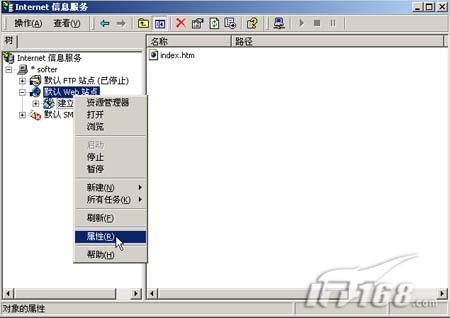 性”。(如图19)  图19 点击看大图 第三步:定位到“WEB站点”标签,将“WEB站点标识”中的TCP端口从默认的80修改为81。(如图20)  图20 第四步:设置完毕后我们就可以通过在浏览器中输入http://10.91.30.45:81来访问发布的所有网站了。(如图21)  图21 第五步:经过上面设置后我们只能用81端口访问发布的WWW站点,输入80端口将无法访问。有没有一种解决方法能够让我们即可以使用80也可以使用81端口访问网站页面呢?方法是有的同样是在默认Web站点页码:[1] [2] [3] [4] [5] [6] 第4页、共6页 |