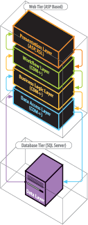 。 对于大多数应用,有两方面的因素决定其选择“头重”服务器: 成本:数据库服务器所用的软件和硬件比 Web 服务器所用的软件和硬件成本高。 可伸缩性:在 SQL Server 2000 中,数据库的可伸缩性在 SQL Server 7.0 的基础上得到改善,但是为了充分发挥新硬件的功能,还需要仔细规划和有效维护。 基于以上原因,基于“脚重”类型的服务器配置体系结构留待以后讨论。 Microsoft n-层物理体系结构 作为比较,我们先看一个没有使用 SQL Server XML 的 Duwamish Online (http://www.duwamishonline.com/) 的物理体系结构。它的设计目的是尽可能实现上面介绍的逻辑体系结构。尽管每一层都设计为执行一类逻辑操作,但是,仍然出现功能分布超出范围的情况。例如,某些业务逻辑由数据库中的存储过程执行以提高性能。那些熟悉 Duwamish Books, Phase 4 的用户很快就会发现结构的改变很小。 图 2:Microsoft n-层体系结构 页码:[1] [2] [3] [4] [5] [6] [7] [8] [9] 第4页、共9页 |