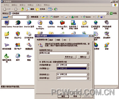 WINDOWS系统为了防止电脑“空转”(在一定时间内没有对硬盘进行任何读、写操作)过久而损坏显示器和硬盘,就规定“空转”一定的时间后会自动关闭显示器和硬盘。