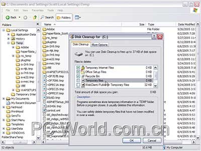 满意的是,当你选择删除临时文件时,这个文件夹里的内容却会被忽略。 对策:在Windows资源管理器中的C盘上点右键(其他盘符也可)选择属性,在常规选项里面会看见“磁盘清理”按钮。点击“磁盘清理”来删除一些无用的文件以获得更多有用的磁盘空间,但它并没有删除在系统盘Local Settings目录下的临时文件(见图1)。所以我们还不得不再手动删除这些文件。删除这些文件前,关闭所有的应用程序,进入这个文件夹,按“Ctrl+A”全选这些文件,然后删除即可。  图1:当Windows提示你的硬盘上已没有任何临时文件时,不用轻信它。自己手动找到这些临时文件并删除它们。 找出隐藏的文件和文件扩展名 烦恼:Windows XP可能认为我不需要查看隐藏的文件和文件扩展名。你认为呢?当然大部分时间确实是这样的。在我查看自己某个文件夹下的JPEG或BMP图片的情况下,这一设置是快捷、有效的。但是病毒也有机会利用这一隐藏的默认属性来引诱我进入它们的圈套。在不显示文件扩展名的情况下,我可能会点击我电子邮件中一个叫SafePic.jpg的图像文件,但它页码:[1] [2] [3] [4] [5] [6] [7] [8] 第3页、共8页 |