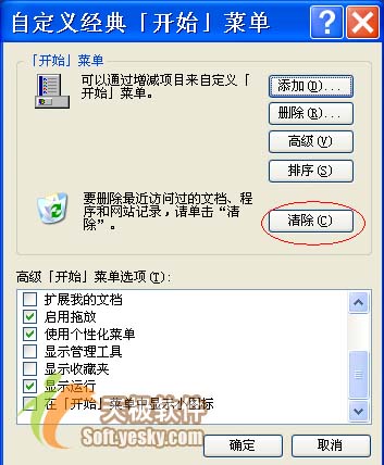 dows系统会自做主张地将最近访问或打开的文档名称,显示在“开始”菜单中的“我的文档”选项中,显然这种自做主张功能会把我们的隐私暴露于众。为此,许多朋友往往会右击系统任务栏,执行右键菜单中的“属性”命令,打开“任务栏和开始菜单属性”对话框,并单击如图4所示中的“清除”按钮,来将显现在“我的文档”选项中的文档名称删除干净。很明显这种操作方法不但麻烦不说,而且还需要定期进行。其实,经过下面的小小设置,可以让系统每次启动完毕后,智能地删除文档记录:  图 4 依次单击“开始”/“程序”/“附件”/“记事本”命令,打开系统的记事本编辑界面,并在其中输入代码“deltree /y X:\Windows\Recent\*.*”(其中X为Windows系统所在的磁盘分区符号),再单击编辑窗口菜单栏中的“文件”/“保存”命令,在弹出的文件保存设置窗口中,将上面的代码保存成“del.bat”文件; 页码:[1] [2] [3] [4] [5] [6] 第5页、共6页 |