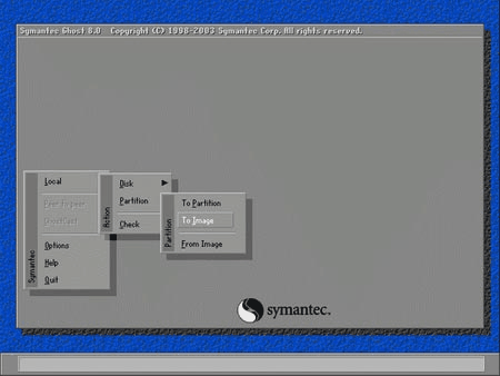 ion→To Image”(见图4),在弹出的对话框中选择硬盘的第一分区(C盘),并设置好镜像文件保存路径和文件名,例如“D:\ghost\xpghost.gho”,注意在提示压缩方式时要选择“High”,即使用最大压缩方式,最终生成的xpghost.gho文件就是Windows XP的万能克隆了。