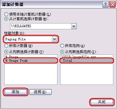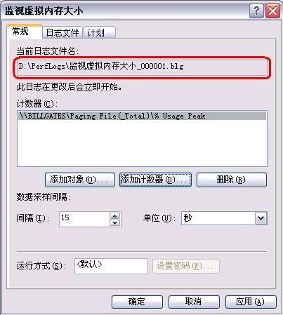 > 四、在“常规”页中单击“添加计数器”按钮,如图 6。  图 6 在“性能对象”中选择“Paging File”,然后选中“从列表选择记数器”下面的“%Usage Peak”,并在右侧“从列表中选择范例”中选择“_Total”。最后单击“添加”和“关闭”按钮,如图 7。  图 7 五、别忘了记住“日志文件”页中的日志文件存放位置和文件名,我们后面需要查看这个日志来判断Windows XP平常到底用了多少虚拟内存,在这个例子中,日志文件被存放在D:\Perflog目录下,如图 8。  图 8 页码:[1] [2] [3] [4] [5] [6] [7] [8] 第5页、共8页 |