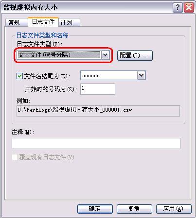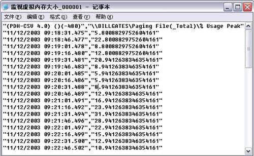 另外还要设置“日志文件类型”为“文本文件”,这样便于阅读,如图 9。  图 9 这时你可以看到刚才新建的日志条目前面的图标变成了绿色,这表明日志系统已经在监视虚拟内存了。如果图标还是红色,你应该单击鼠标右键选择“开始”来启动这个日志。 过一段时间后打开这个CVS文件,我们可以看到如下内容的条目,如图 10。  图 10 这个日志文件记录这一段时间中页面文件的使用情况,注意这里的单位是%,而不是MB。通过简单的计算,我们就可以得到页面文件的最小尺寸,公式是“页面文件尺寸X百分比”。比如这个例子中,虚拟内存最大的使用比率是31%,300MBX31%=93MB,这个值就是虚拟内存的最小值(注意,300MB是前面的设置的临时值)。 如果物理内存较大,可以考虑将页面文页码:[1] [2] [3] [4] [5] [6] [7] [8] 第6页、共8页 |