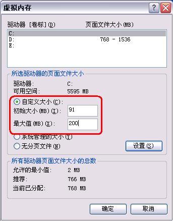 件的“起始大小”和“最大值”设置为相等,等于上一步中计算出来的大小。这样硬盘中不会因为页面文件过渡膨胀产生磁盘碎片,其副作用是由于“最大值”被设置的较小,万一偶然出现虚拟内存超支的情况,可能会导致系统崩溃。 设置页面文件 现在回到“虚拟内存”的设置对话框中选择自定义大小并按照上面的计算结果分别设置“初始大小”和“最大值”,如图 11。这里我们将“初始大小”设置为91M,而将“最大值”设置成了200M,这样比较保险。  图 11 对页面文件进行碎片整理 Windows XP运行时需要大量访问页面文件,如果页面文件出现碎片,系统性能将会受到严重影响,而且会缩短硬盘的使用寿命。所以我们很有必要对页面文件定期进行碎片整理。 不过别忘了,页面文件是系统关键文件,Windows XP运行时无法对其进行访问。所以对它进行碎片整理并不是一件容易的事情。我们有两种方案可以选择,一是安装Windows双系统,然后启动另外一个Windows对Window页码:[1] [2] [3] [4] [5] [6] [7] [8] 第7页、共8页 |