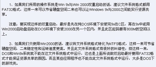 经验总结以及有关注意事项。 一、升级文件系统  注意:在Windows 2000下将文件系统升级为NTFS格式的方法是,点击“开始-程序-附件”选中“命令提示符”,然后在打开的提示符窗口输入“convert drive_letter/fs:ntfs”,其中的“drive”是我们所要升级的硬盘分区符号,如C区,还需要说明的是,升级文件系统,不会破坏所升级硬盘分区里的文件、无需要备份。 二、清楚不需要的文件和程序 1、删除Windows强加的附件 (1)用记事本NOTEPAD修改\winnt\inf\sysoc.inf,用查找/替换功能,在查找框中输入“,hide”(一个英文逗号紧跟hide),将“替换为”框设为空,并选全部替换,这样就把所有的,hide都去掉。 (2)存盘退出; 页码:[1] [2] [3] [4] [5] 第2页、共5页 |