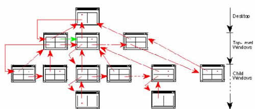 面窗口和顶层窗口之间的关系一样。  户区域,所有同一个窗口的子窗口同样建立一个Z 轴,这个和顶层窗口是类似的,顶层窗口也是显示在其父窗口――桌面窗口的客户区域。 16 位和32 位窗口系统的区别 窗口之间的父子关系、归属所有关系、以及根据 Z 轴来显示的这些规则在16 位和32 位窗口系统中都是相同的。这样可以是在两种窗口系统中高度的兼容。两种窗口系统的区别在于安全和多线程。 Window Nt 在原有的窗口层次关系中多增加了一层,每一个运行着Window NT 的系统中都有一个Window 工作站对象,这个对象是安全对象的第一层,是所有用户安全对象的继承之源,每一个Window 工作站对象可以拥有一些桌面对象,每一个桌面都拥有上面描述的那样的窗口关系。Window Nt 用了两个桌面窗口对象,一个是用来处理登陆界面、屏蔽、锁住工作站等,一个是我们登陆之后进来操作的窗口了。J 通常用户是不能够创建和删除桌面的,不过那是通常,实际上在Window 下面也可以实现类似 Linux 中的多个桌面的效果,每一个桌面都是页码:[1] [2] [3] [4] [5] [6] [7] [8] [9] 第4页、共9页 |