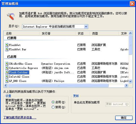 ,在此可以看见当前加载的各种插件程序以及详细信息。 ②比如我们需要对Flash Catcher这个插件进行禁用,只须从列表中选取它,并且点击下部的“禁用”按钮,即可让插件失效(图6)。  图 6 提示:如果需要临时启用某个禁用的插件,可以先选中它并点击下部的“启用”按钮。 3.增强安全控制 为了避免上网冲浪时误中网页中的恶意代码,或者是不小心下载了乔装之后的病毒程序,SP2在IE的安全控制方面也是下了大力气的。 ①运行“工具→Internet选项”命令之后,在“安全”标签下可以查看到默认的安全级别为“中级”,这个等级能够有效防护系统安全,而且无法将它调整为“低”或者“最低”,这样就避免降低安全级别之后网页中恶意代码对系统进行破坏了。 提示:如果确认系统安全性有保障,可以在注册表编辑器中进入“HKEY_CURRENT_USER\S oftware\Microsoft\Windows\Curr entVersion\InternetSettings\Zone页码:[1] [2] [3] [4] [5] [6] [7] [8] [9] 第6页、共9页 |